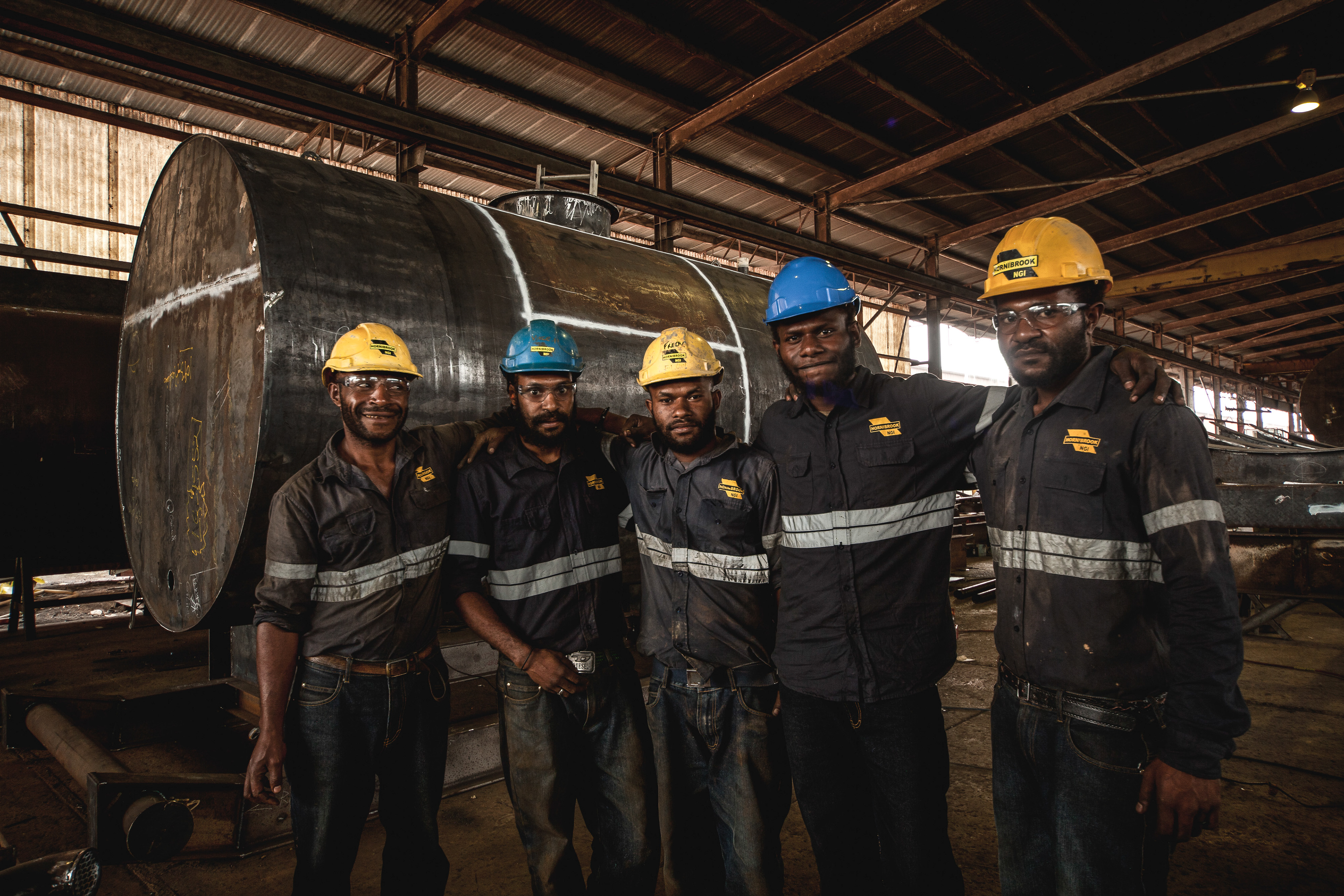 Brand, content and work-in situ photography for Papua New Guinean company Hornibrooks NGI. Photographer of workers, equipment, and the construction line process for machinery and equipment building.